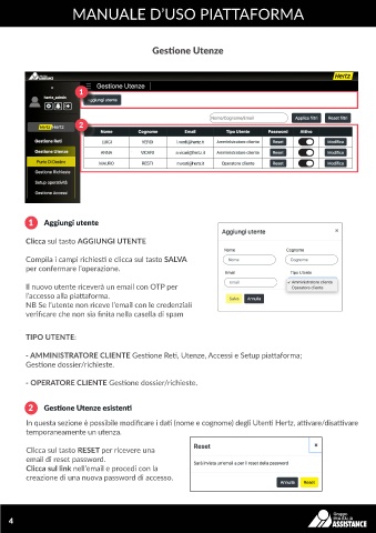 In questa sezione è possibile modificare i dati (nome e cognome) degli Utenti Hertz, attivare/disattivare