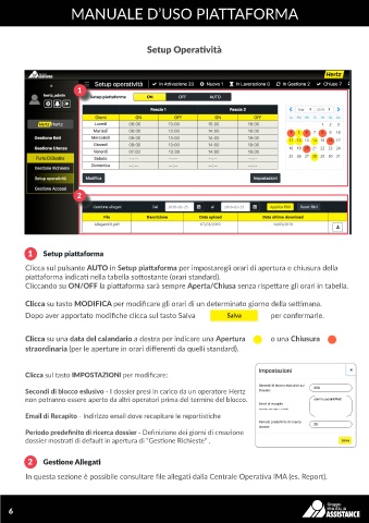 Clicca sul pulsante AUTO in Setup piattaforma per impostaregli orari di apertura e chiusura della